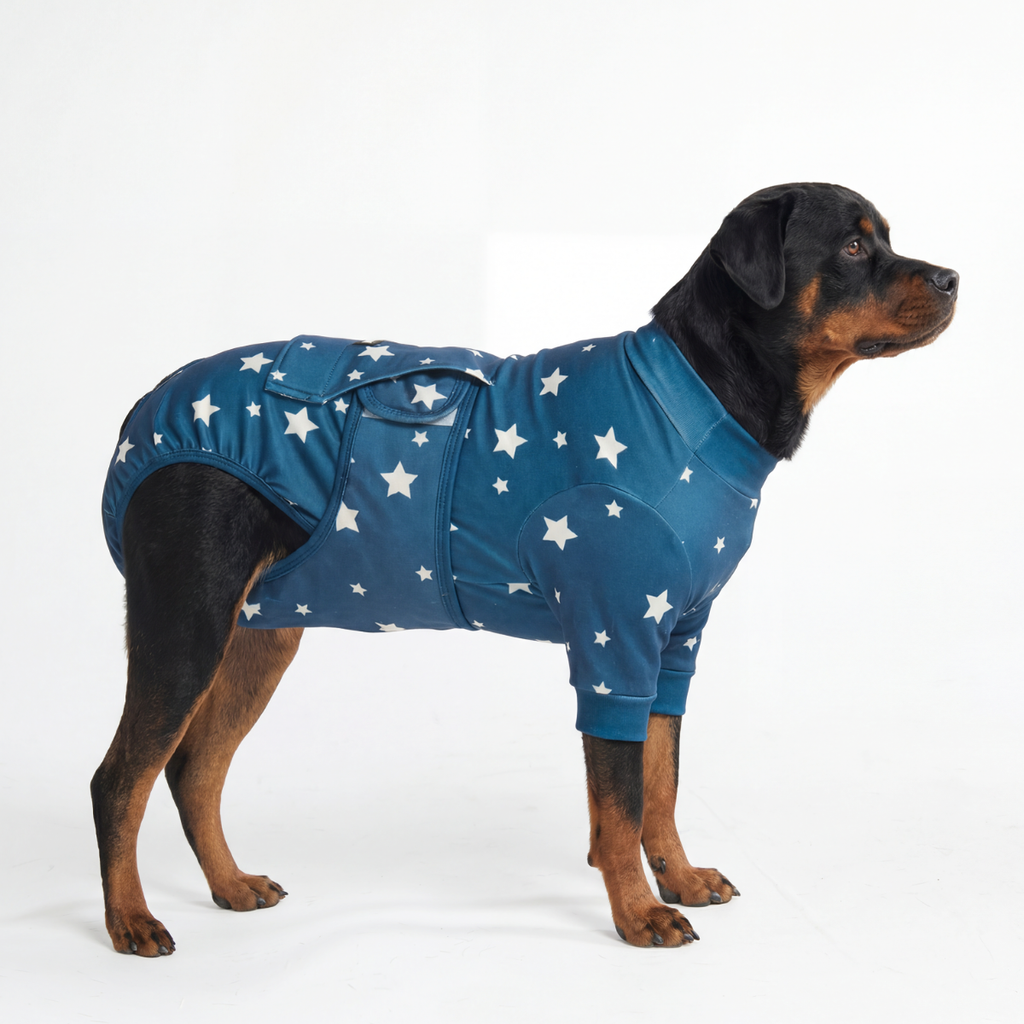 Vergiss die „Tüte“ und sorge für eine komfortable, stressfreie Genesung. Unser OP-Body bietet eine weiche, sichere Barriere, die Wunden schützt, während dein Hund sich normal bewegen, fressen und schlafen kann.