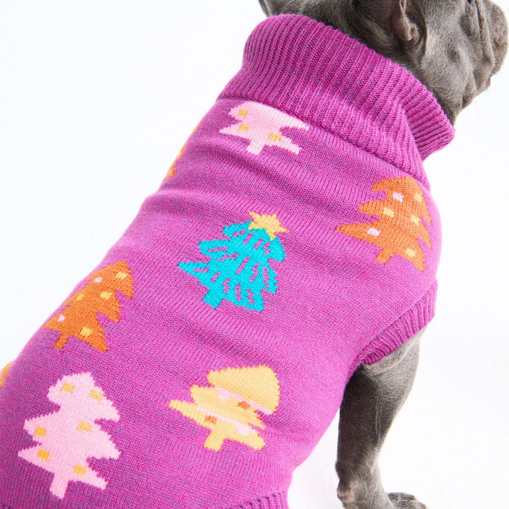 Weihnachts-Strickpullover für Hunde – Magenta-Zuckerstangen-Bäume