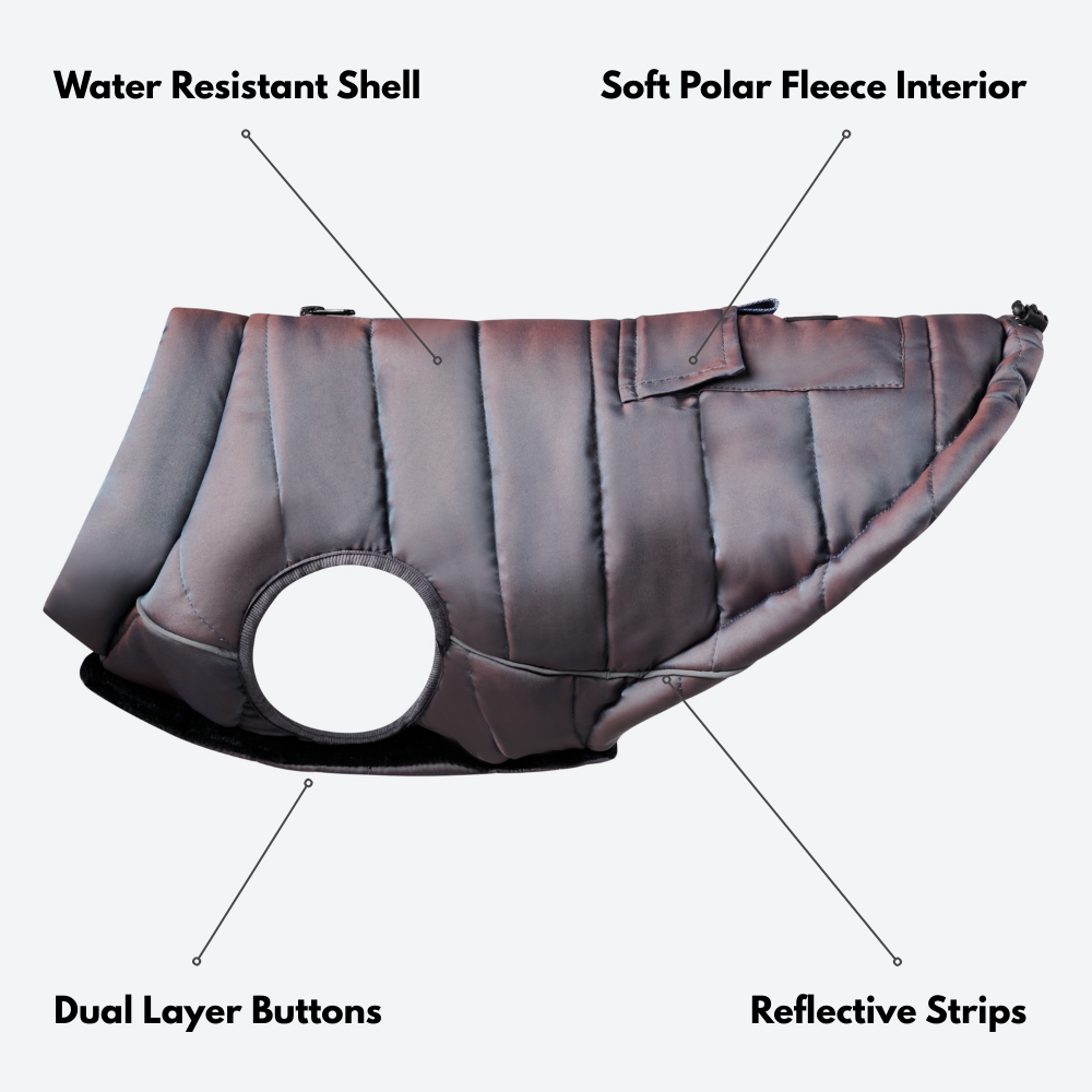 Zusätzliche Isolierung und Innenfutter aus Polarfleece, damit Ihr Hund an kalten Wintertagen warm bleibt.